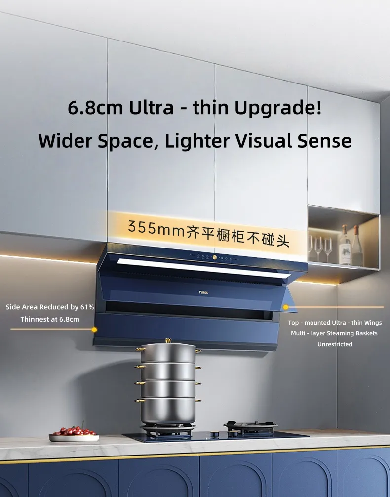 يتميز غطاء المحرك هذا بتصميم شفط مزدوج 7 أشكال (جبهة 41 مم ، خزانة 355 مم ، 6.8 سم رقيقة) ، جسم أزرق لامع أنيق. مزود بـ 2.0 ذكي بدون حركة (حجم هواء ثابت للربط والعاكس) ، ومجرى هواء كبير 2.0 حلزوني ، يوفر حجم هواء عالي النار 28.5 م 3/دقيقة ، وضغط ثابت للغاية 1200 باسكال ، وضوضاء منخفضة 50 ديسيبل. ميزات مثل تنقية الأيونات السالبة ، رفرف كهربائي ، تنظيف طلاء النانو ، وضوء ساطع ناعم 835 مم يعزز الأداء وتجربة المستخدم.