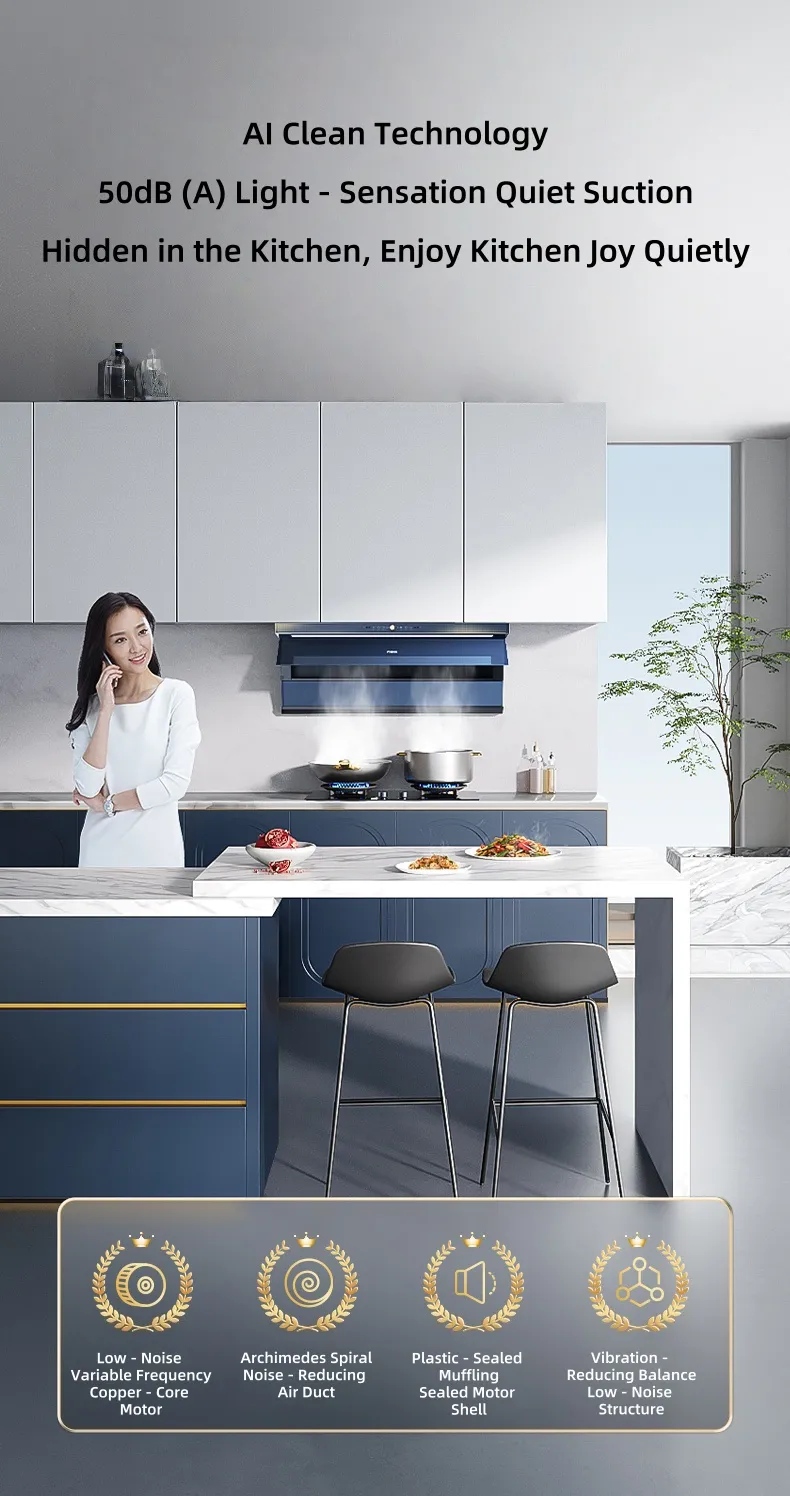 ال كلين تكنولوجي50 ديسيبل (أ)شفط هادئ للإحساس بالضوء ، مخفي في المطبخ ، استمتع بفرح المطبخ بهدوء