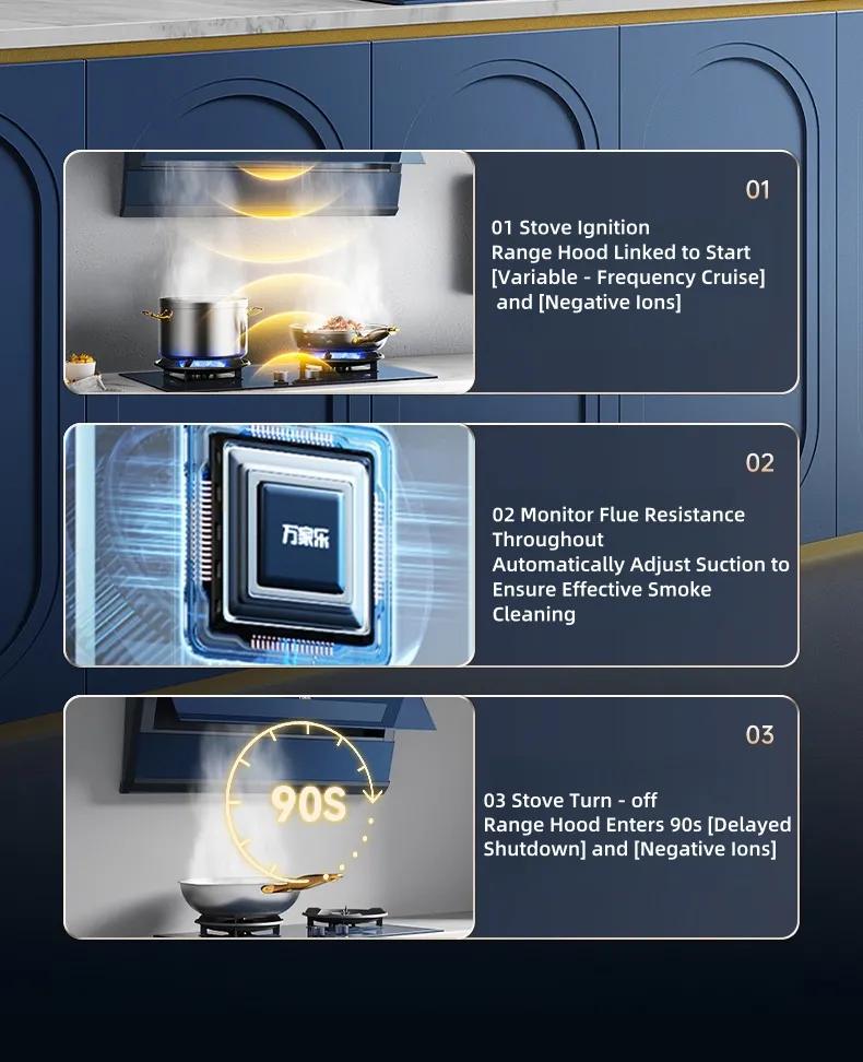 مرشحات الشحوم: نظف كل 1-3 أشهر (أو شهريا للطهي الثقيل) بالماء الساخن والصابون أو غسالة الأطباق.< ر> فلاتر الفحم (موديلات بدون مجاري): استبدلها كل 3-6 أشهر.< ر> التنظيف العميق: جدولة الخدمات المهنية سنويا.