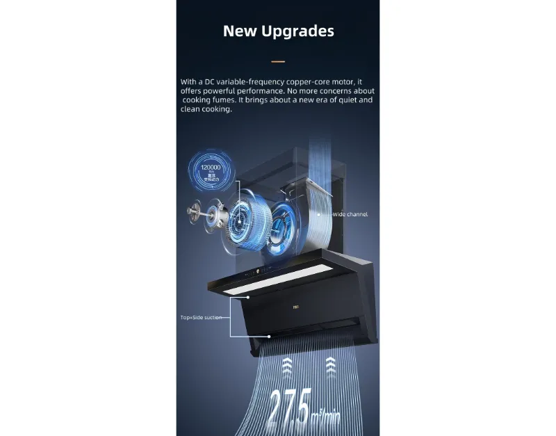 مع محرك نحاسي متغير التردد يعمل بالتيار المستمر ، فإنه يوفر أداء قويا. لا مزيد من المخاوف بشأن أبخرة الطهي. إنه يجلب حقبة جديدة من الطهي الهادئ والنظيف.
