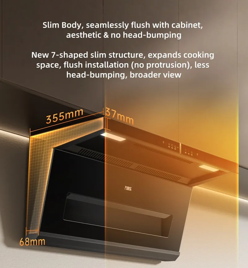 يوسع الهيكل النحيف الجديد المكون من 7 أشكال مساحة الطهي بشكل كبير ، ويمكن دمجه بحرية في الخزانة دون بروز ، وليس من السهل أن يصطدم بالرأس ، ويوفر رؤية أوسع