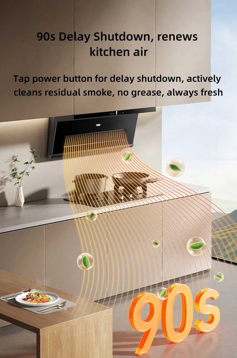 لمس بلطف زر الطاقة للدخول تأخير الاغلاق ، تمتص بنشاط وتنظيف الدخان النفط المتبقية ، وداعا للمطبخ دهني ، والحفاظ على المطبخ الطازجة في جميع الأوقات