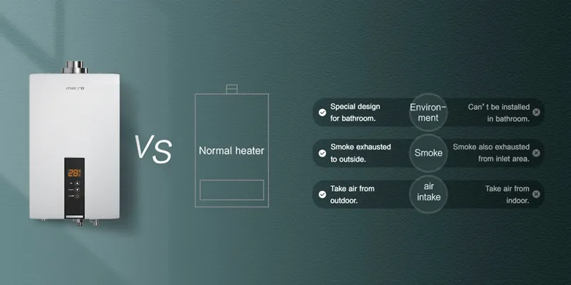 Q: ما& # 039; ق الفرق بين مشروع القسري وسخان المياه الغاز من نوع التوازن?