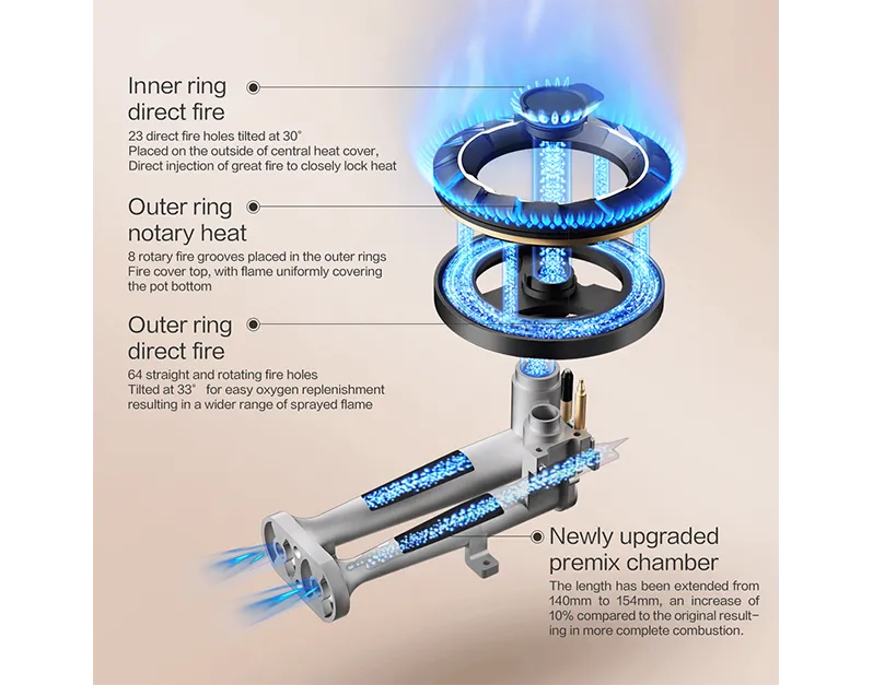 ترقية حديثا موحدة النار لهب تراكم حرق نظام الطبخ مهارة موقد في آفاق جديدة