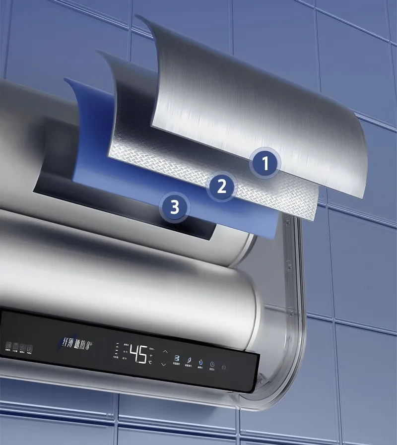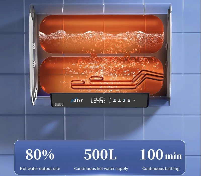 تعمل أنابيب التسخين المزدوجة بقدرة 3200 وات جنبا إلى جنب مع تقنية الخزان المزدوج ، مما يتيح التسخين السريع وتوسيع السعة بمقدار 8 أضعاف-مما يضمن الاستحمام لفترة طويلة دون انقطاع حتى أثناء ذروة الاستخدام. نظام ذكي (تحويل التردد) يحسن استهلاك الطاقة ، ويحقق كفاءة الطاقة من الدرجة 2 مع تقليل فقد الطاقة الاحتياطية.