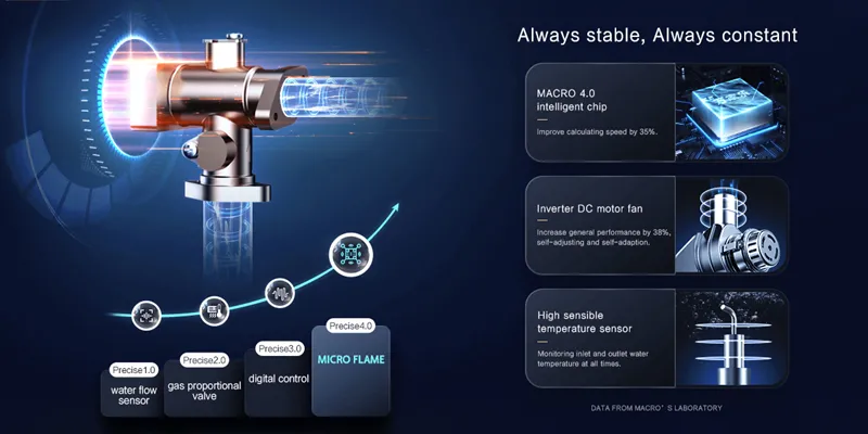متكاملة مع 3 مكونات التحكم الأساسية ، وتحقيق الغاز الأمثل والمياه المباراة ، والتحكم الثابت والديناميكي على وجه التحديد ، والحفاظ على الماء الساخن مستقرة دائما.