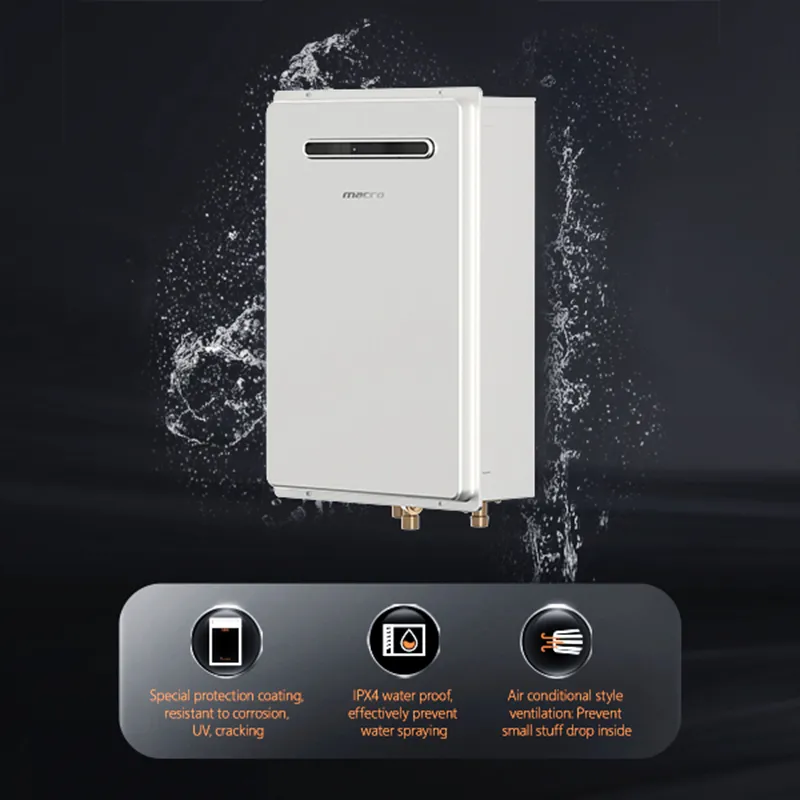 س 2 سلسلة سخان المياه الغاز الخارجي ، مع إيبكس 4 المياه برهان و العاكس مروحة المحرك ، وجود تحمل قوي للبيئة في الهواء الطلق ، اعتماد نظام التحكم الرقمي الذكية مع تكنولوجيا العاكس المتقدمة ، تحقيق الذكية التكيف الذاتي ل ستابليز درجة الحرارة ، جلب أفضل تجربة الماء الساخن.