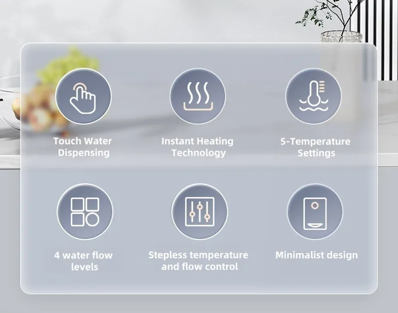 يتميز موزع المياه المتميز هذا بتصميم أنيق من الزجاج المقسى مع التحكم باللمس سريع الاستجابة للتشغيل بدون مجهود. يوفر نظام التسخين الفوري 2200 واط الماء الساخن في 3 ثوان فقط مع تعديل درجة الحرارة بدون خطوات من 40 C درجة مئوية إلى 100 C درجة مئوية ، مما يسمح لك بتخصيص درجة حرارة الشرب المثالية. تشمل الميزات الرئيسية ما يلي:
