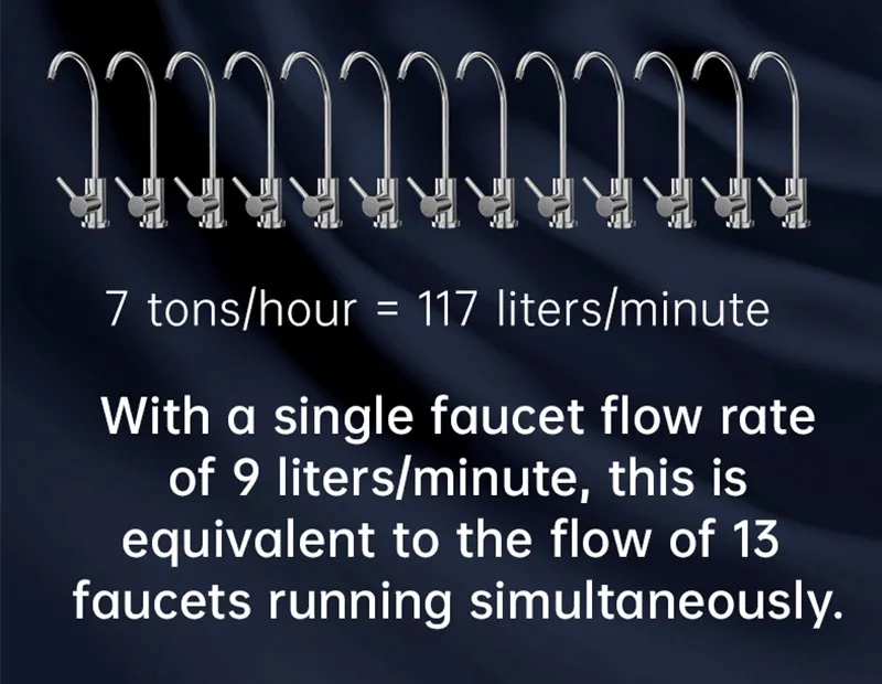 مع معدل تدفق صنبور واحد من 9 لتر / دقيقة ، وهذا يعادل تدفق 13 فوكيت تعمل في وقت واحد