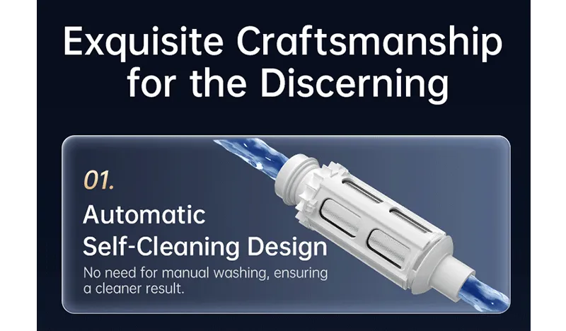 زر التحكم الذكي مع شاشة ليد يوفر الرصد في الوقت الحقيقي والتشغيل. يضمن نظام التنظيف التلقائي المبتكر المكون من 4 أوضاع (بما في ذلك أوضاع التدفق الموقوتة والأوضاع اليدوية) أداء لا يحتاج إلى صيانة: