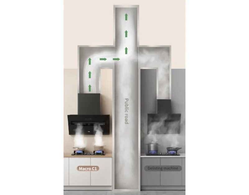اليسار واليمين قناة شفط الدخان مستقلة ، مما يجعل شفط أكثر اكتمالا.