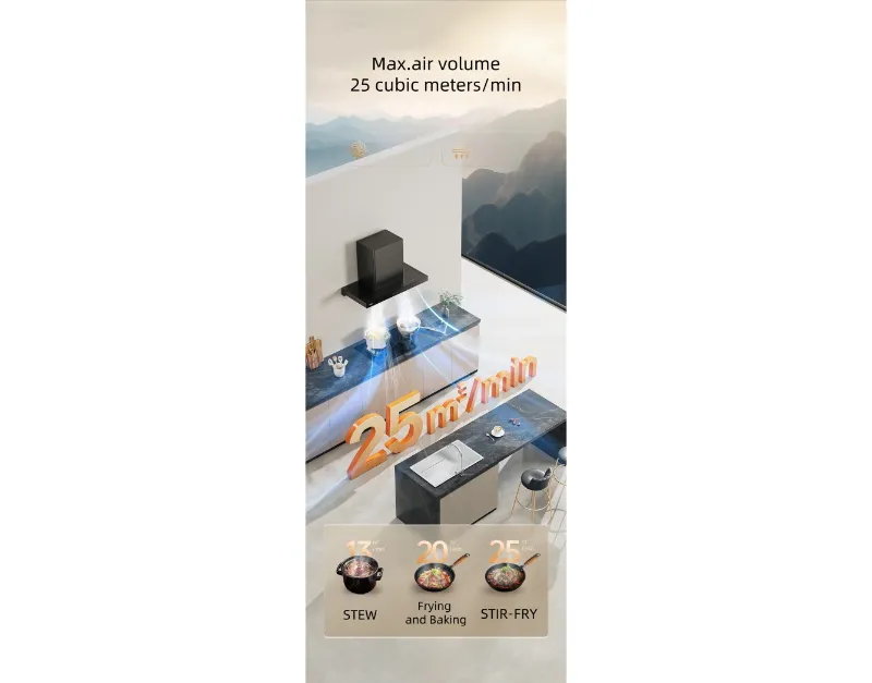 يتميز شفاط المطبخ بمكره مطلي بالنانو مع تقنية التنظيف الذاتي الذكية لصيانة خالية من المتاعب. يعمل ضبط ضغط الشفط الذكي على تحسين تدفق الهواء تلقائيا ، بينما يضمن وصلة غطاء المحرك التشغيل المتزامن مع سطح الموقد الخاص بك. لوحة شفط الإفراج السريع يسمح لسهولة التنظيف ، وظائف مريحة مثل تأخير الاغلاق ، تذكير النفط ، والإضاءة أعلى تعزيز تجربة الطبخ الخاص بك.