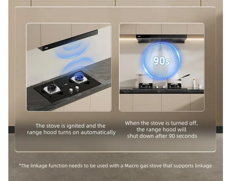 عند إيقاف تشغيل الموقد ، سيتم إيقاف تشغيل شفاط المطبخ بعد 90 ثانية
