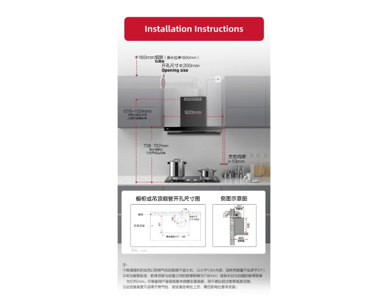 ارتفاع التثبيت هذا مناسب فقط لمواقد الغاز. إذا تم تثبيته فوق موقد كهربائي ، فإنه يحتاج إلى تلبية متطلبات تركيب موقد كهربائي.