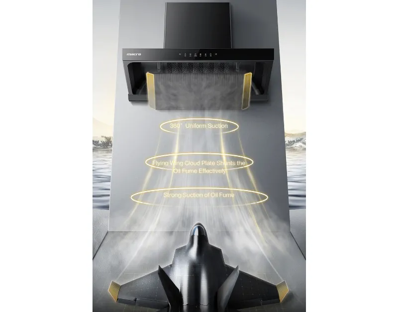 يشكل هيكل الغرق منطقة ضغط سلبي قوية ومنطقة شفط واسعة ، تغطي موقد الغاز ، وتمتص دخان الزيت بسرعة ، بحيث لا يوجد مكان للهروب من دخان الزيت