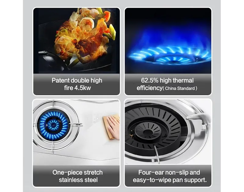 يجمع موقد الغاز هذا بين الأداء والمتانة مع كفاءة الطاقة من الفئة 2 ، مما يضمن تقليل استهلاك الطاقة دون المساس بالطاقة. يتميز بإخراج طاقة كبير بقدرة 5.0 كيلو وات ، ويوفر تسخينا سريعا للطهي متعدد الاستخدامات ، من البطاطس المقلية عالية الحرارة إلى الغليان اللطيف. يتم إعطاء الأولوية للسلامة من خلال ميزات الحماية المتعددة ، بما في ذلك الكشف التلقائي عن اللهب لمنع تسرب الغاز.