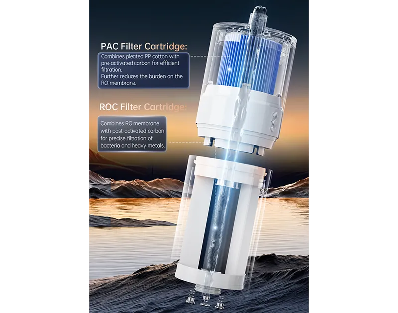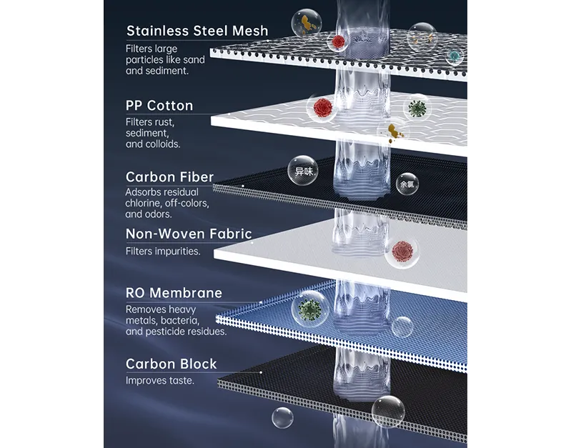 يجمع بين غشاء التناضح العكسي والكربون المنشط للترشيح الدقيق للبكتيريا والمعادن الثقيلة.