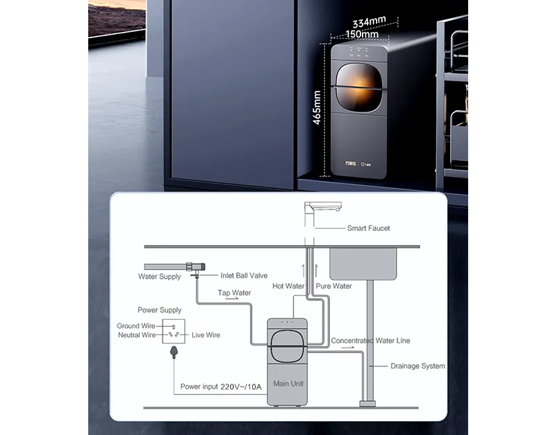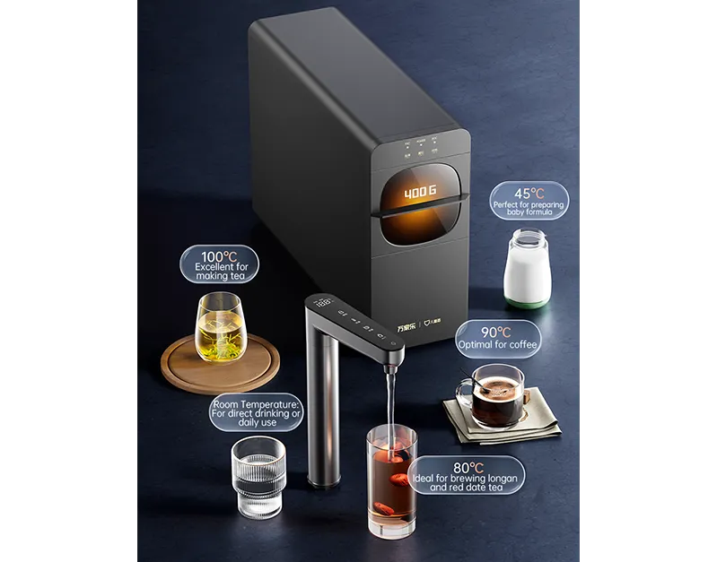 مع خمسة إعدادات درجة الحرارة قابل للتعديل يوفر هذا النظام توزيع الماء الساخن دقيقة وفعالة لسيناريوهات متعددة. تشمل الميزات عرض درجة الحرارة في الوقت الفعلي ، وتذكيرات استبدال الفلتر ، وقفل أمان للأطفال لمزيد من الراحة والأمان.
